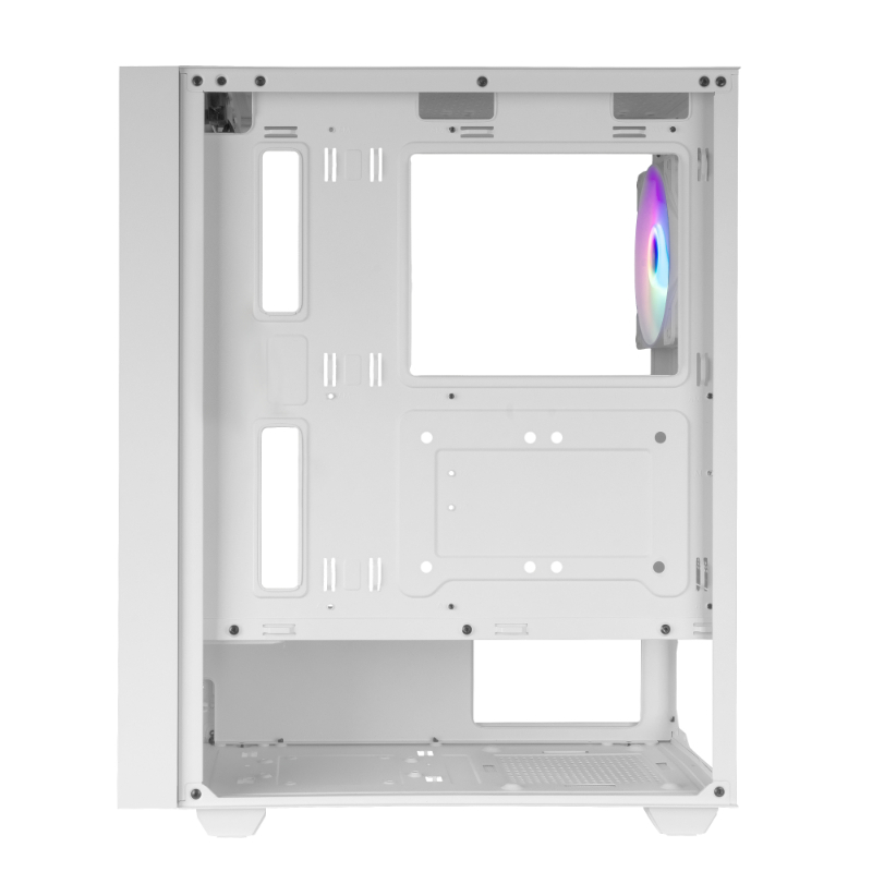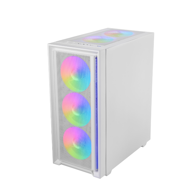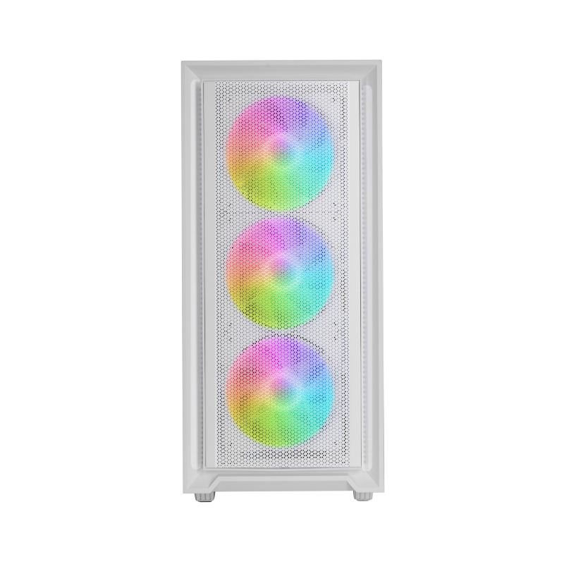La caja MC-AIR combina alto rendimiento y diseño con su elegante frontal Mesh y 4 ventiladores FRGB Rainbow de 120mm preinstalados (3 en el panel frontal y 1 en la parte trasera). Su ventana lateral de cristal templado permite exhibir tu configuración con estilo, mientras su diseño de doble cámara optimiza el flujo de aire para mantener tus componentes en temperaturas óptimas.