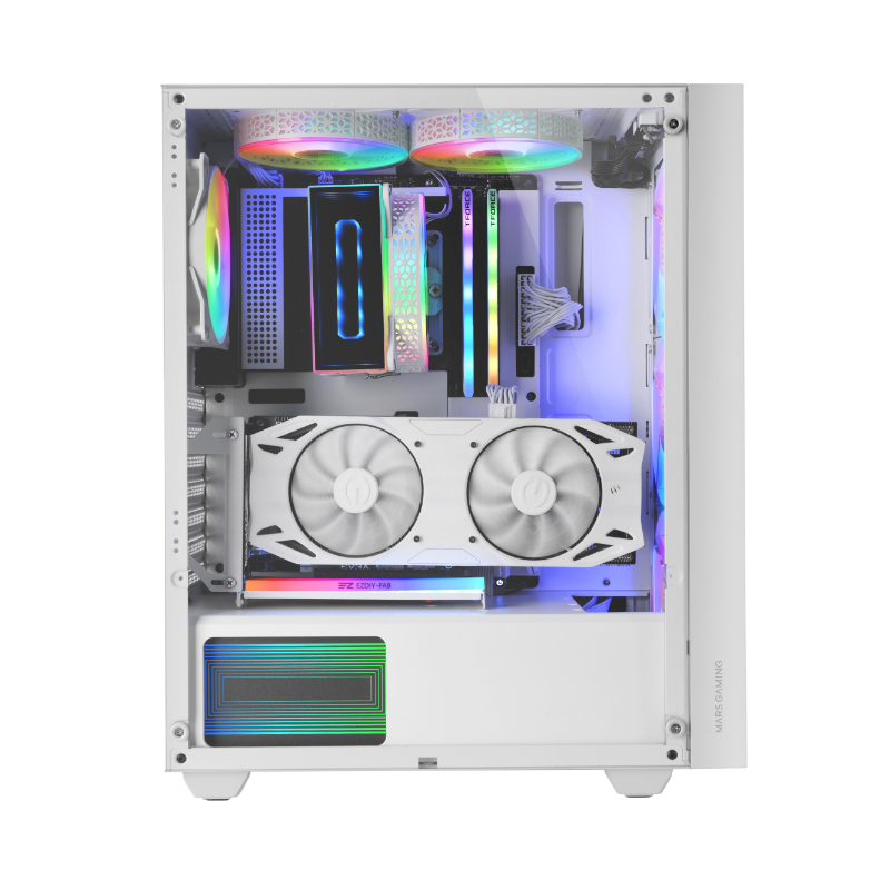 Con 4 ventiladores FRGB Rainbow de 120mm integrados y capacidad para albergar hasta 6 ventiladores y sistemas de refrigeración líquida de hasta 360mm, la caja de ordenador MC-AIR ofrece una capacidad de refrigeración excepcional, ideal para configuraciones exigentes. Su estructura de doble cámara mejora el flujo de aire, manteniendo tus componentes clave a temperaturas óptimas incluso en las configuraciones más exigentes