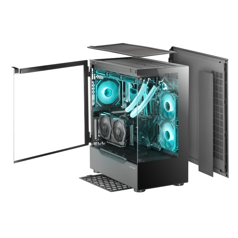 Bahías: 2x3'5, 5x2'5/ 1xUSB3.0/2xUSB2.0/ Audio In/Out/ Vista panorámica con cristal templado