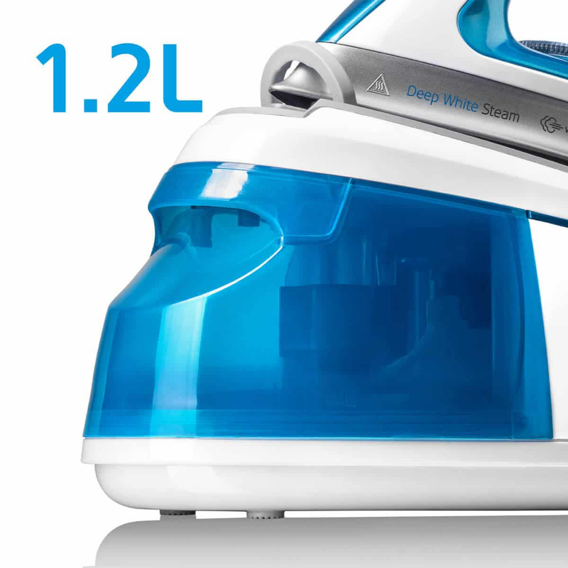 Con una capacidad del depósito de agua de 1,2 L, la plancha de vapor HAEGER White Blue permite largas sesiones de planchado sin interrupciones. Con una potencia total de 2250 W, una presión de vapor de 3,5 bares, un chorro de vapor de 120 g y una salida de vapor continuo de 80 g, este producto garantiza un rendimiento potente y eficaz.