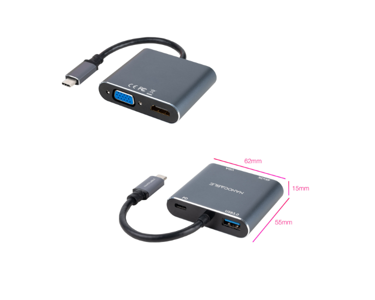 USB-C a HDMI, VGA, USB3.0, USB-C PD/ 15cm