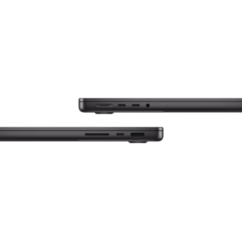 El MacBook Pro viene con una gran variedad de puertos para usar periféricos avanzados, monitores de alta resolución y tarjetas SDXC. Los modelos con chip M4 Pro y M4 Max ahora incluyen Thunderbolt 5, que alcanza velocidades de transferencia de hasta 120 Gb/s.