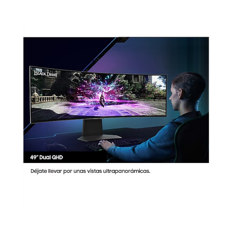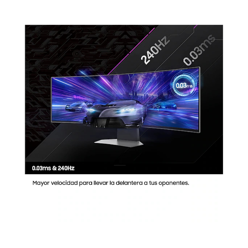 49" Oled Curvo / 32:9/ 5120x1440/ DP, HDMI, Micro HDMI/ 3xUSB 3.0/ 0.03ms(GTG)/ 240Hz/ Inclinable/ VESA 100x100mm/ WiFi 5/ BT 5.2/ Ajustable en altura
