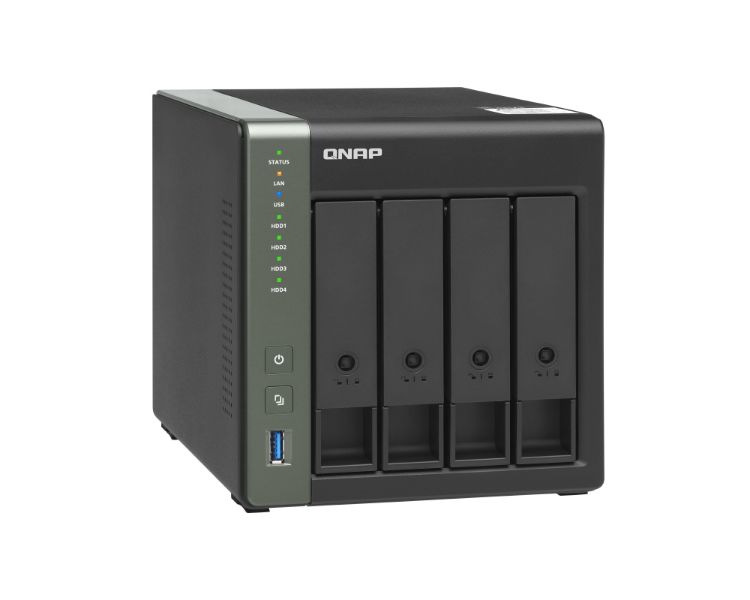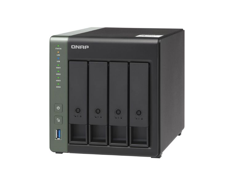 El TS-431X3 de cuatro núcleos ofrece cuatro bahías para unidades que permiten un almacenamiento de alta capacidad con una memoria ampliable de hasta 8 GB de RAM para responder a las necesidades de copia de seguridad, recuperación y almacenamiento virtualizado de los datos de las PYMEs. El puerto SFP+ de 10GbE integrado ofrece un alto ancho de banda para la transmisión de una gran cantidad de datos. En combinación con el switch 10GbE de QNAP, puede crear un entorno de red de 10GbE de alta velocidad. El TS-431X3 también incluye un puerto RJ45 de 2,5GbE y un puerto RJ45 de 1GbE para mejorar la eficiencia de la colaboración y el intercambio de archivos en equipos. El TS-431X3 ofrece funciones de copia de seguridad local, fuera de las instalaciones y en la nube, así como una tecnología de instantáneas que le ayudará a crear un plan fiable de copia de seguridad y recuperación ante desastres. En caso de fallo del sistema o eliminación accidental de archivos, puede restaurar rápidamente el sistema a su estado normal.