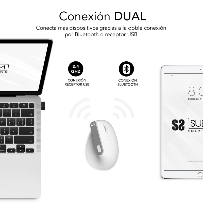 RATON OPTICO DUAL NATURE VERTICAL ERGO DUAL BATERIA BLANCO SUBBLIM