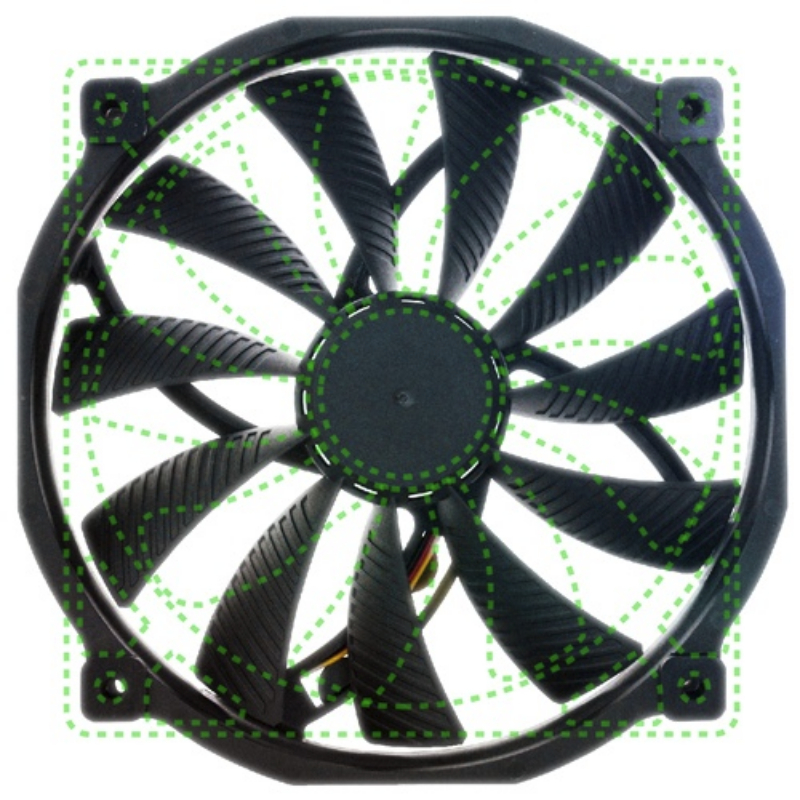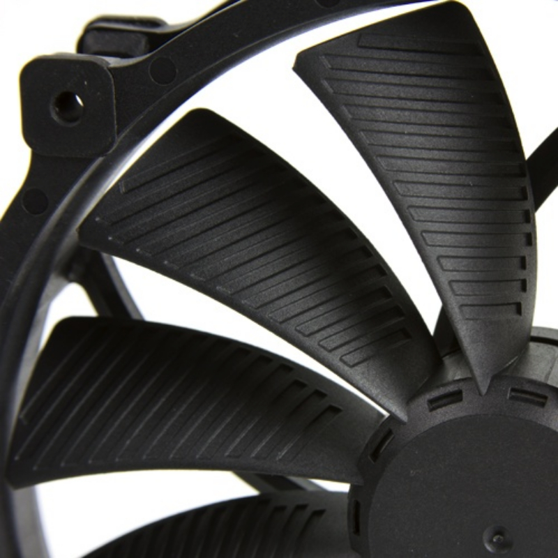 Los ventiladores GlideStream de 140 mm están equipados con orificios de montaje adecuados para dimensiones de 120 mm. Esto se logra mediante las "esquinas redondeadas" únicas que dan como resultado un alto flujo de aire combinado con un bajo nivel de ruido.