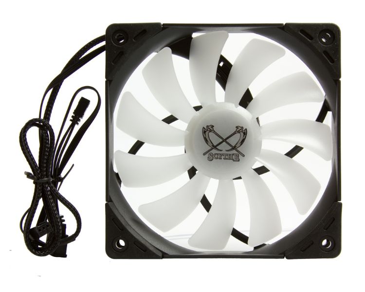 Ocho LED RGB dispuestos en un anillo alrededor del motor del ventilador generan una iluminación potente y constante de las aspas translúcidas del ventilador. Los LED funcionan con un cable RGB estándar de 4 pines que puede controlarse directamente mediante el sistema RGB común de varios fabricantes de placas base. Compatible, entre otros, son sistemas como ASUS TM Aurora Sync, ASRock TM RGB LED, MSI TM Mystic Light Sync y Gigabyte TM RGB Fusion.