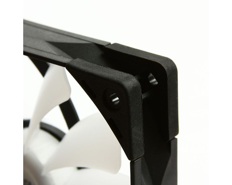 La serie de ventiladores Kaze Flex está equipada con almohadillas de goma que absorben vibraciones y golpes que cubren los orificios de montaje sin túnel. Estos desacopladores eliminan eficazmente las posibles vibraciones y permiten un funcionamiento silencioso.