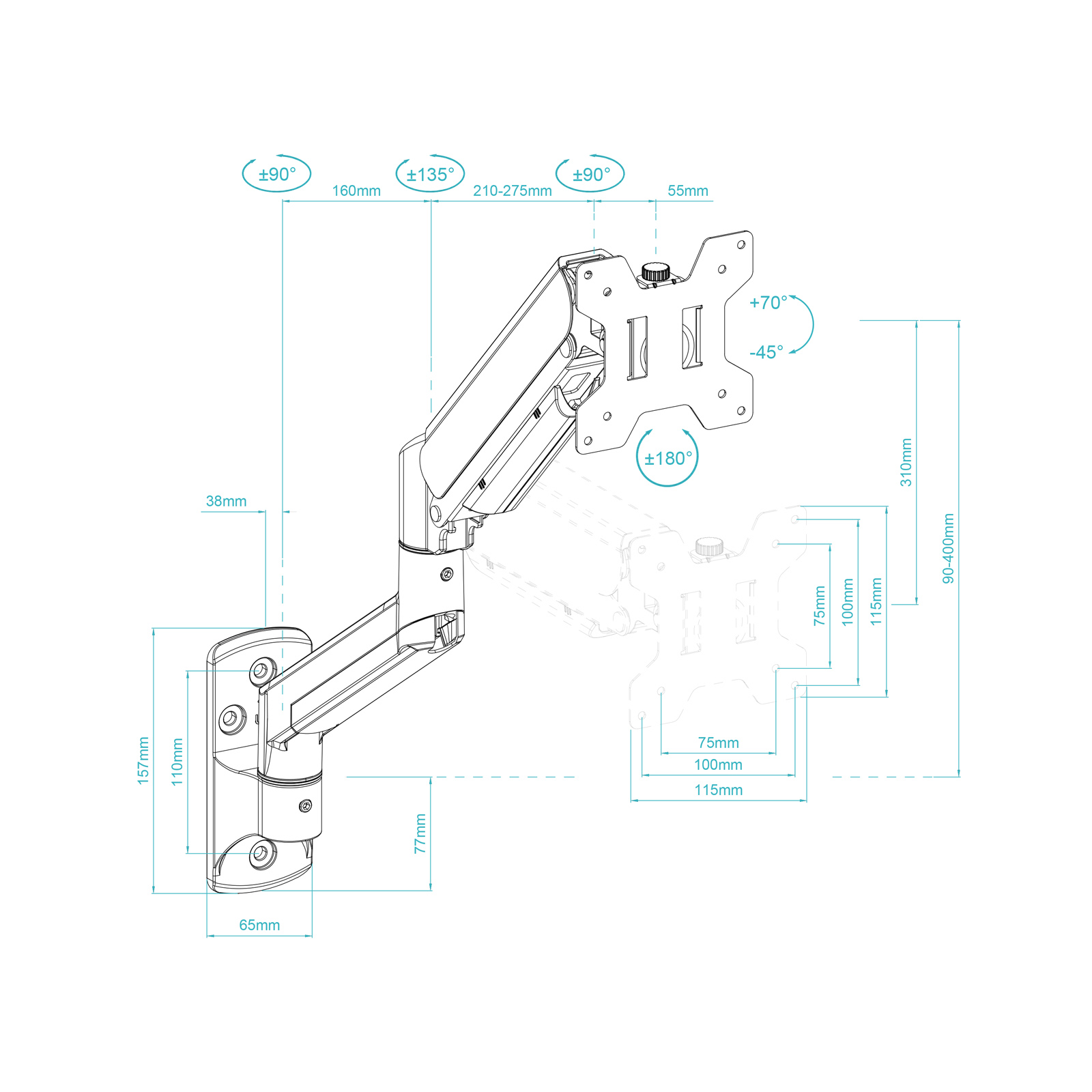 Soporte de Pared para Pantallas 13”-34”, Negro