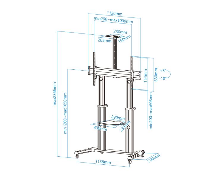 60" A 100"/BANDEJA PARA DVD/ VESA MAX. 1000x600/CARGA MAXIMA 100KGS/ REGULABLE EN ALTURA/ INCLINABLE
