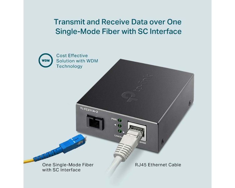 TP-LINK CONVERTIDOR MEDIOS WDM RJ45/FIBRA (2 KM) TL-FC311A-2