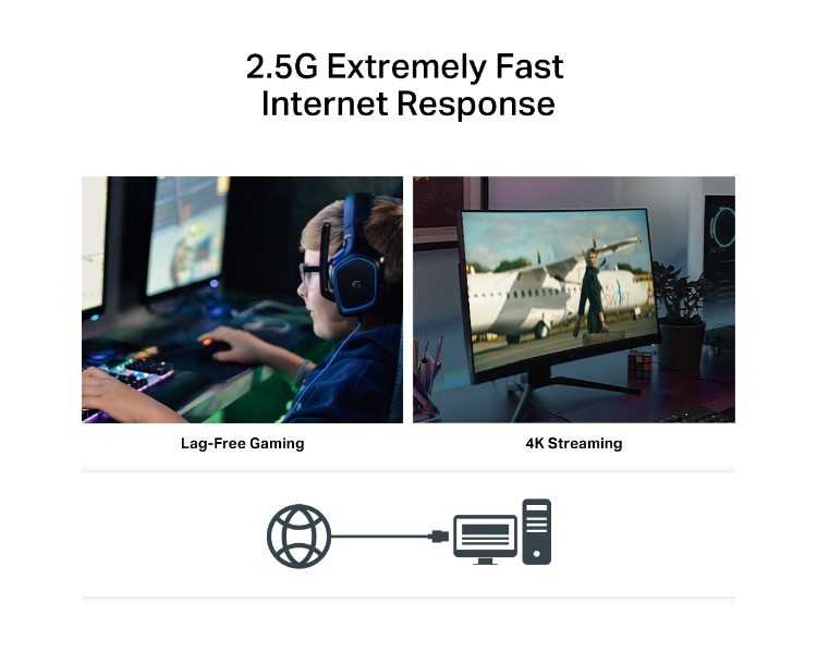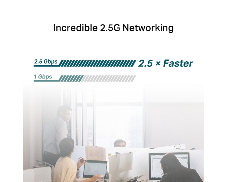 Compatibilidad versátil: con velocidad extrema y latencia ultrabaja, 2.5GBase-T es compatible con versiones anteriores de Fast Ethernet y Gigabit Ethernet, negociando automáticamente entre conexiones de mayor y menor velocidad.